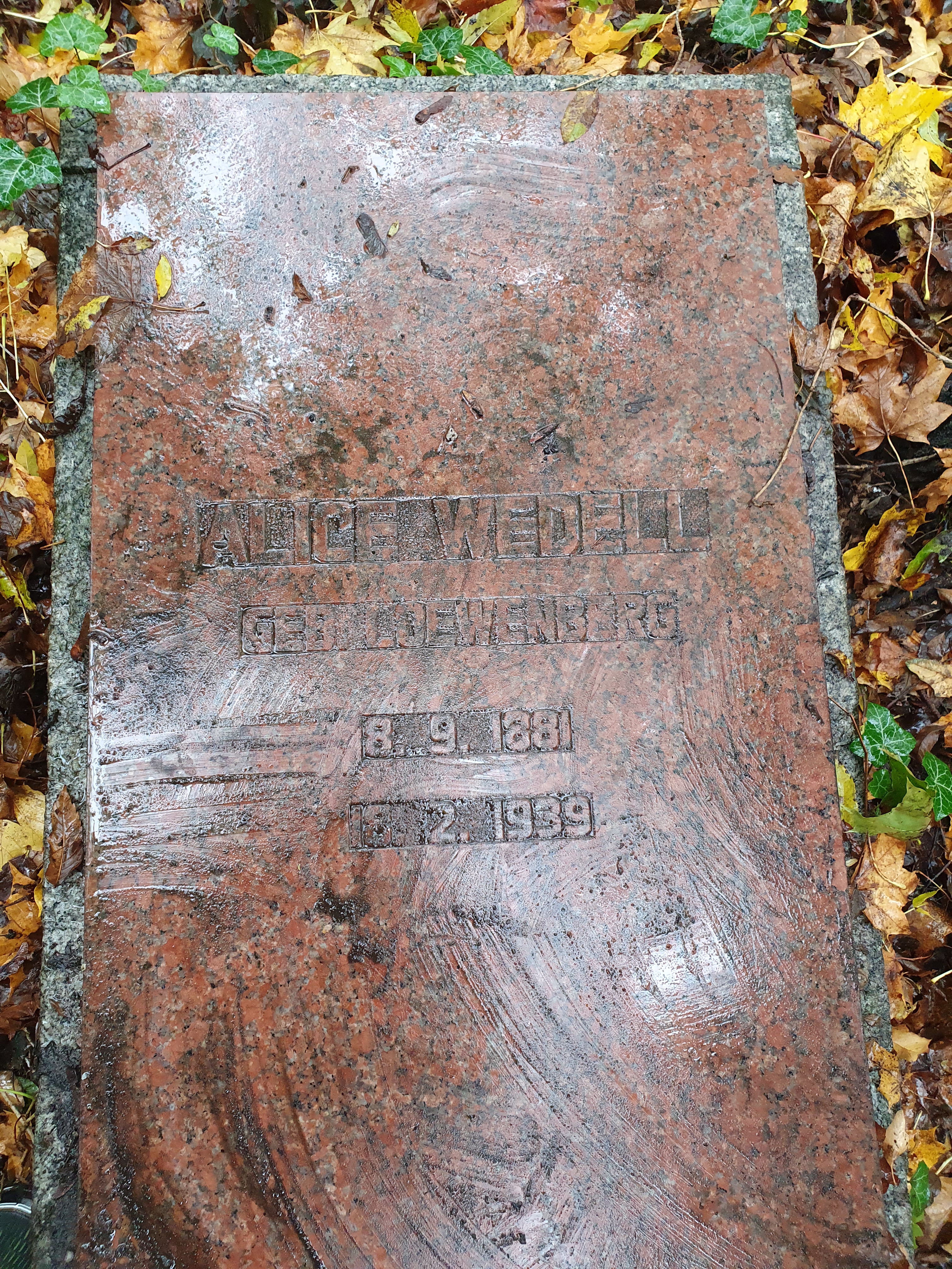 Alice is buried in the Judischer Friedhof, Berlin Weissensee. Her husband Ludwig died in the Shoah in Riga, Poland and his remains were never recovered. A memorial plaque is placed next to Alice’s grave.